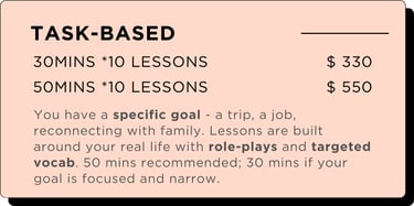 Choose the lesson style that fits your learning goal (Priced in USD):